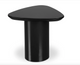 The Eden accent table features a rounded triangular shape and oval pedestal base, creating a sculptural silhouette that exudes modern sophistication. An ivory white and black high gloss finishes this table's surface, reflecting light, brightening and opening up any space.
