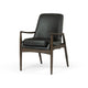 Mid-century modern sophistication. Arrestingly detailed nettlewood frame adds an architectural feel to a precisely shaped dining chair upholstered in smoky-black top-grain leather.