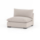 Deep, low seating says relax. A flexible, one-armed chair is covered in an inviting, durable light grey woven fabric. Modular components allow the perfect combination for any space.