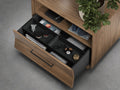 Blending function with elegance, the KAVA 28-inch Nightstand provides a spacious surface, hidden power station, and thoughtful storage. A perfect bedside companion with ample room for essentials.