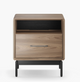 This ingenious nightstand surprises with a sliding top, bringing contents forward for easier access from bed. A pullout shelf keeps nighttime essentials close-at-hand and the integrated power station ensures you and your devices both get a nice recharge