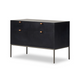 Made from oak veneer with a deep charcoal finish, this spacious cabinet delivers ultimate storage, including six shelves. Partially turned detailing on the front posts adds a design-forward finishing touch.