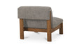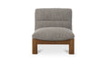 Folded to get noticed. Pierce leans into ’70s spirit with its low profile, armless frame, and tufting. The foldover detail softens the structure, giving it shape and slouch in equal measure. Wrapped in a flecked fabric, it brings contrast with a solid wood base that keeps it grounded. The kind of seat that says, “stay a while”—and means it.