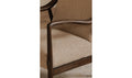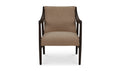 The Yates accent chair's solid oak frame and sumptuous faux shearling merge the coziness of plush upholstery with the timeless beauty of classic craftsmanship. Its deep brown finish enhances the wood's natural grain, offering traditional charm to its slim, mid-century design. The curved, slender arms broaden for restful support, balancing the chair's sleek profile with practicality.