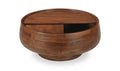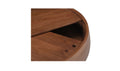 Clean lines up top, clever storage underneath. Wade pairs a dome-like silhouette with a pedestal base, so the room feels open, not crowded. Rounded edges and a warm natural finish let the wood’s grain do the talking, while the swivel top reveals hidden storage for remotes, magazines, and the little stuff that adds up. It’s sculptural enough to admire, and practical enough to live with—daily. Pull it for movie night, then spin it shut again.
