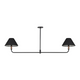 A modern mix of materials creates this midcentury-inspired linear chandelier with double pendants. Shades are covered with 100% top-grain leather and topped with a walnut finial. Aged-brass detailing completes the look. Trend-forward and perfect over a long dining table.