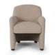 A pared-down frame gets a style upgrade with vintage-inspired wrapped arms. The chair's seat and back cushion appear to blend seamlessly into the arm rests for a comfortable, sleek take on seating. Upholstered in a thick-cut leather with natural graining throughout.