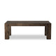 Made from thick-cut oak veneer with a faux rustic finish made to emulate wormwood, this clean-lined dining table features chunky squared legs and dovetail joinery detailing.