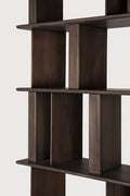 A rhythmic play of form and function, the Block rack brings sculptural impact to everyday storage. Crafted from solid mahogany, its angular dividers offer dynamic views from every angle—whether placed solo or in sequence. Defined by its clean lines and open spacing, the Block rack balances visual interest with everyday practicality.