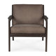Made from dark brown tainted mahogany with a varnish finish and high-density foam with Terra nubuck full aniline leather upholstery.