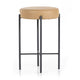 Textural grey seating upholstered in high-performance fabric exclusive to Four Hands, with angular solid oak arms and black-finished stainless steel framing perfectly sized for the counter.