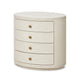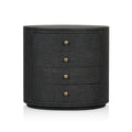 Uniquely made from black-painted linen, a beautifully curved nightstand shapes four drawers for generous bedside storage.