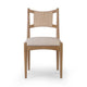 A curved back wrapped and textural woven paper cord take this everyday dining chair to new heights. Black-finished parawood frames a linen-blend seat for a clean look with contrast.