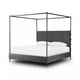 Bring texture into play. This iron canopy bed features a headboard upholstered in a classic boucle fabric with decorative leather straps for a material-driven contrast. Standard box spring required. This bed is not compatible with an adjustable mattress.