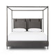 Safari styling gets refreshed with modern-minded high-performance fabric. Leather straps secure decorative suspended headboard pillows. Box spring required. This bed is not compatible with an adjustable mattress.