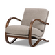 Inspired by vintage rocking chairs, the whimsical frame of this accent chair hugs removable plush feather foam-blend cushions on a webbed suspension style construction for true sink-in comfort. Cushions are upholstered in a supple Brazilian-made leather with a rich grain structure throughout for added character.
