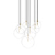 Clear glass spheres dangle at varying lengths for a stunning effect. Each globe is individually blown, shaped and sculpted by hand through a one-hour process. The finish on the brass frame is achieved through a specialized process that turns the brass into an almost black hue before the rod is polished smooth. Brass and glass are 98% recyclable. Designed and sustainably crafted in Poland by Schwung. This piece is not compatible with sloped ceilings.