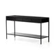 Thick-cut oak veneer forms a clean, structured frame for a fold-over concrete top finished in a deep, dark grey.