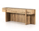 Simple and streamlined to showcase natural beauty. Finished in a weathered wheat, solid reclaimed pine fashions a modern media console with rustic vibes.