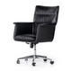 Light tan top-grain leather and polished aluminum fuse for a modern office chair perfectly sized for executive desks. Casters plus height adjustability add ease.