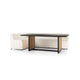 Talk about texture. Topped with cream-colored high-performance fabric for clever comfort, a dining bench of whitewashed solid mango features side panels of natural cane for a trendy touch.