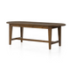 Made from solid pine that's been weathered for a distressed, farmhouse-style look then finished in a warm honey. Simple tapered legs support an oval top with a stretcher and apron for a beautifully traditional look. Seats 10 comfortably.