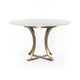 A welcoming, round farmhouse table draws the eye with its reclaimed wood top and a compelling architectural base in a rustic black olive finish. Easily extends to 79" with built-in leaf.