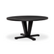 Finished in an antique black, raw aluminum shapes a bistro-style dining table with a turned, geometric look. Seats four comfortably.
