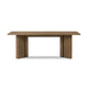 A smoked black finish delivers a character-rich look to an open-style dining table. Angled panel legs separated by a round cylinder up the intrigue factor.