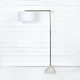 Slim and cylindrical, an antique brass finish highlights iron's gradual blending of hues, for distinctive ombre effect. A grey cotton shade plays up this fresh mixing of materials.