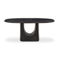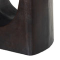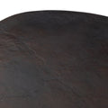 Organic shaping meets a bold C-shaped cutout on this aluminum outdoor dining table. An antiqued rust finish brings subtle dimension. Cover or store inside during inclement weather and when not in use.