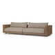 Streamlined comfort with an upscale modern look. This outdoor sectional has a woven frame that offers depth to a clean shape. Monochromatic color pairing with knife edge back and box seat cushions adds to the simple silhouette and mixed material look. Cover or store indoors during inclement weather and when not in use.
