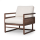 Coastal casual meets the folded trend. Wide folded wrap arms and slim wooden legs bring sleek drama to a traditional frame. Upholstered in a soft poly/linen blend with soft, subtle texture for a casual look and feel.