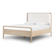Safari styling gets a modern reboot. Ivory performance fabric brings smart modernity to the bedroom. Brown leather straps secure decorative headboard pillows, suspended for eye-catching effect. Performance fabrics are specially created to withstand spills, stains, high traffic and wear, ensuring long-term comfort and unmatched durability. Box spring required. This bed is not compatible with an adjustable mattress.