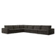 Deep, low seating says relax. An inviting sectional is covered in a soft, durable woven fabric. Modular components allow the perfect combination for any space.