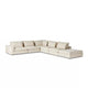 Deep, low seating says relax. An inviting sectional is covered in a soft, durable fabric. Modular components allow the perfect combination for any space.