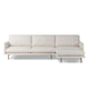 A minimalist sectional to redefine contemporary lounging. Made from tan top-grain leather with a slim profile, expert tailoring and plush cushions for comfort. Sleek metal legs and compact sizing make this piece a versatile anchor for smaller living spaces.