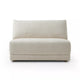 An elevated take on the modular sectional ottoman featuring sleek lines all around. Covered in a new basketweave cream fabric that brings both texture and comfort to the entire piece.