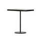 A cradle, angular base of black-finished iron supports a squared tabletop of hand-cast recycled glass in a smoky amber. Perfectly sized to keep your favorite drink or book within reach.