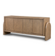Made from natural reclaimed elm with wire brushing for texture, a clean, streamlined design features a plinth base and break front for depth. Rear cutouts for easy cord management.