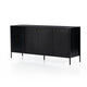 Bring a softened industrial look to the media room with a simple black-finished iron console table featuring bronzed iron hardware for modernity. Four roomy drawers plus open center shelving offer ample storage area for media needs, with a rear cutout for cord management.