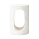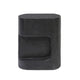 Cutout detailing brings a clean, modern vibe to a versatile end table of cast concrete. A water transfer finish creates a textured look and sandy hue resembling natural travertine.