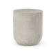 Made from textured concrete, a cylinder shaped end table features a pill-shaped cutout for a light look. Subtle mottling adds a hint of texture.