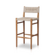 The traditional coffee table gets a textural twist. Chunky column legs of light-washed mahogany support a rectangular tabletop of braided sugar palm leaves.