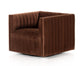 Horizontal channeling lends a clean, linear look to sofa-style seating, while cream-colored high-performance fabric adds fresh sensibility perfectly suited for the modern living room.