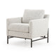 Plush and modern-minded. Atop an airy, bronze-finished iron base, thick, boucle-like upholstery features clean, angular track arms and comfy cushioning, for the best of both worlds.