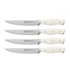 The Forged Accent steak knife set includes 4 knives with semi-serrated edges, so that you can slice through meat and poultry with razor sharp precision. These knives feature a handsome white handle and are stored in an attractive black gift box.