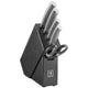 - Knives fabricated from high-quality German stainless steel with a satin-finished blade