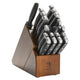 Tackle kitchen tasks with ease with this comprehensive knife block set. This 15-piece knife set is conveniently housed in a handsome dark wood block and features the essential knives you need to tackle daily kitchen tasks, from a precision paring knife to an all-rounder chef’s knife, and a honing steel to keep them all razor sharp. The beautiful triple-rivet white handles are curved for comfort, supporting tireless cutting as the distinctive stainless-steel end cap stylishly provides balance.