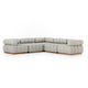 A modern take on mid-century Italian design, soft volume and exaggerated proportions fuse for a sculpted look and playful feel. Atop a plinth-style teak base, outdoor-friendly five-piece sectional features dramatic tufting for a padded sit, indoors and out. Cover or store inside during inclement weather and when not in use.